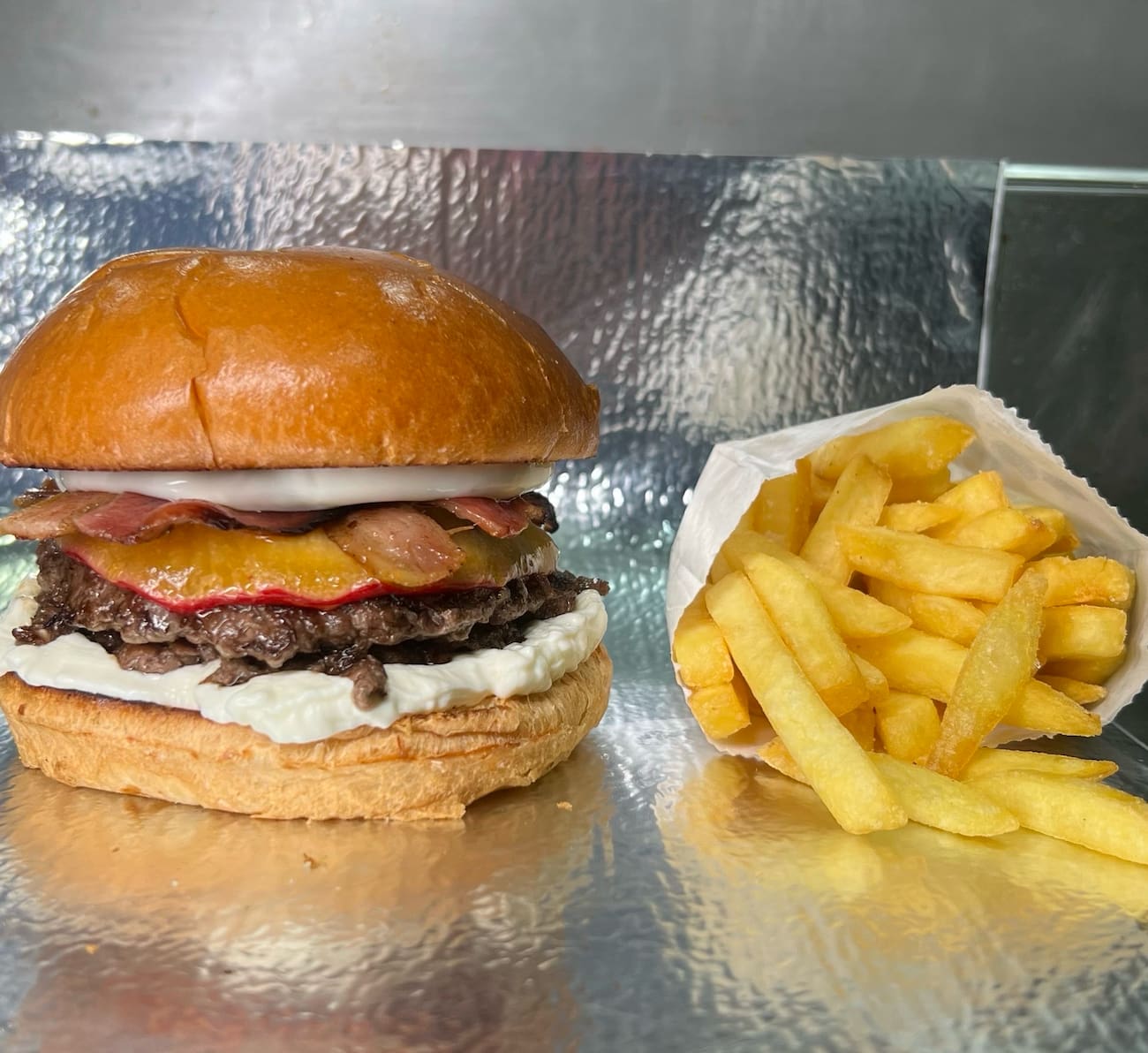 Pão brioche especial com 3 hambúrgueres de 80g cada, combinados com molho especial, queijo do reino, cream cheese e bacon crocante. Um burger robusto, cheio de sabor e feito para quem realmente gosta de hambúrguer de verdade.
