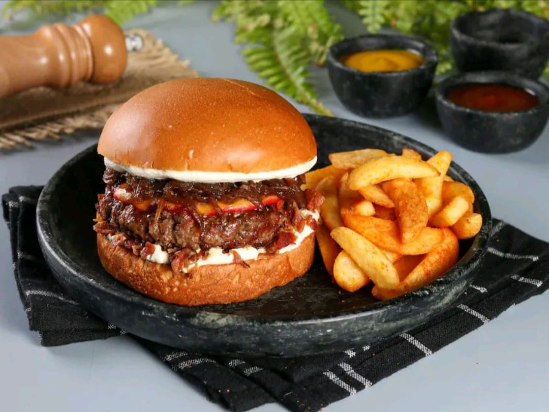 Pão brioche especial com 3 hambúrgueres de 80g cada, combinados com molho especial, queijo do reino, cream cheese e bacon crocante. Um burger robusto, cheio de sabor e feito para quem realmente gosta de hambúrguer de verdade.