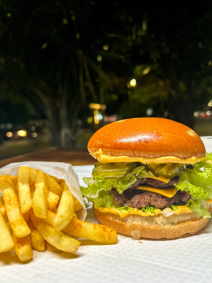 Pão brioche especial com 3 hambúrgueres de 80g cada, combinados com molho especial, queijo do reino, cream cheese e bacon crocante. Um burger robusto, cheio de sabor e feito para quem realmente gosta de hambúrguer de verdade.